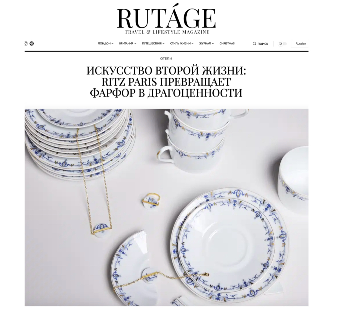 RUTÁGE, Russian London lifestyle magazine, explores the debut of the first limited-edition fine jewelry collection from the legendary Ritz Paris. The article tells the story behind the transformation of porcelain into luxury adornments — a unique meeting point of tradition and modernity, where timeless elegance takes on a new meaning.