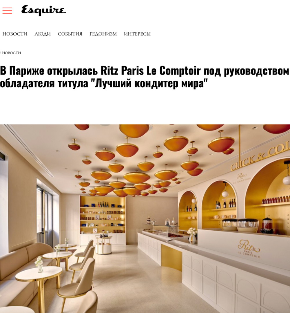 Esquire Kazakhstan highlights a milestone event for both Ritz Paris and the city itself: the opening of Ritz Paris Le Comptoir, led by world-renowned pastry chef François Perret. In addition to beloved classics, the patisserie offers a range of signature desserts crafted exclusively by the chef.